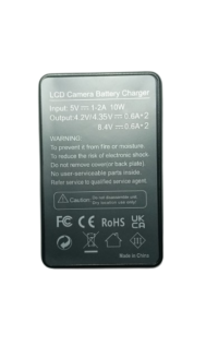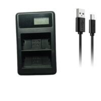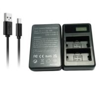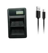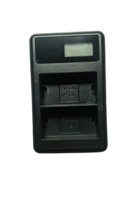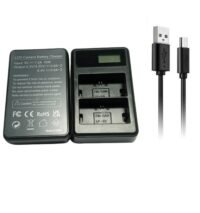 - Can charge 2 battery at a time and Charge from standard electrical outlet Sales package include : one lp 6 charger and one MU Cable for charging