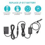 Specifications: Color: Black Material: Input: PD 9V/12V Output: 8.4V 2A Compatibile Power Supply: Power bank and portable power source with PD 9V/12V output protocol Compatibility: Replaent for RP EOS 77D 200D 250D 750D 760D 800D 850D Rebel T6S T6i T7i T8i SL2(Not compatible with M3 M5 M6) Cable Length: 35-100cm Product Size: 5 * 3.3 * 1.4cm/ 1.9 * 1.2 * 0.55inch Product Weight: 40g/ 1.41oz Package Size: 15 * 11 * 2cm/ 5.9 * 4.3 * 0.78inch Package Weight: 42g/ 1.48oz Note: The camera showed in the pictures is not included. Some new models might have higher t, so please kindly use high performance power supply. Installation Steps: ①Connect the type-c cable with or portable power source; ②Put the dummy battery into the camera battery compartment. Package List: 1 * Type C to DR-E18 DC Coupler