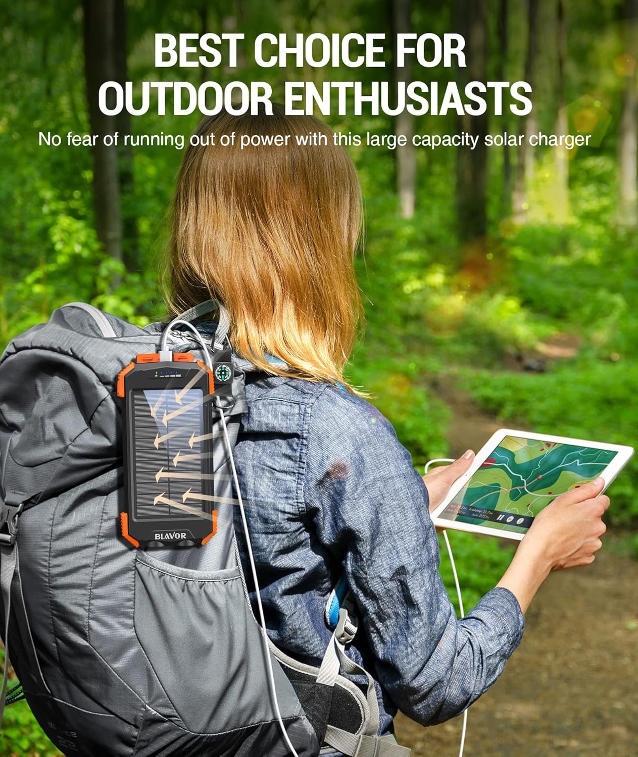 ☀ SOLAR CHARGING SUPPORT – Equipped with solar panel for emergency top-up charging during outdoor activities like trekking, camping, and travel.