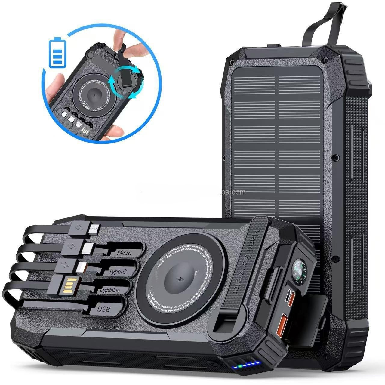 ☀ SOLAR CHARGING SUPPORT – Equipped with solar panel for emergency top-up charging during outdoor activities like trekking, camping, and travel.