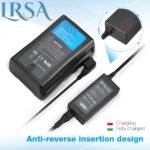 Includes 1 charger and Power cord | Charges high capacity V Mount batteries and Gold Mount batteries | Charges any battery with a V-lock series design, including LRSA Power 95Wh, 150Wh, 190Wh, 300Wh V Mount battery LRSA Power V-mount series offers unparalleled performance and value for your professional camcorder. LRSA Power Charger for V-Mount batteries. This D-Tap battery charger has a built-in protective circuit to prevent the battery from overcharging, overvoltage and overcurrent. Note: Does NOT include batteries V-Mount Cherger Info: AC Input: 100-240V 50/60Hz 1.0A , DC Output: 16.8V-3A Compatibility: Compatible with all cameras using V Mount / V Lock / Gold mount batteries. Compatible with: BP-U65, BP-U68, BP-U95, BP-U150, BP-U300, HVR-S270C PMW-EX330K PMW-EX330L, PMW-580K PMW580L, PDW-680 PDW-700 PDW-850,PMW-TD300,HDW-F900R HDW-680 HDW-800P, PMW-F55 PMW-F5,etc. Fast Charging & Safety: Fast charge with automatic constant current control prevents the battery from overcharging, short circuit, over the current and electronic shock. Charger Indicator: Red light is for charging, green light is for fully charged. Easy to tell if the battery is fully charged. Package List: 1x D-Tap charger, AC charging cable.